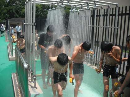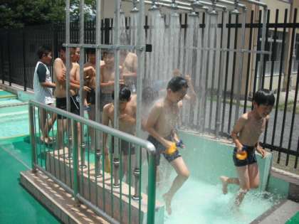 準備運動の後,シャワーを浴びてプールサイドへと進みました。
