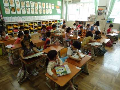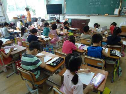 1年生も集中して机に向かう朝でした。