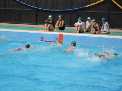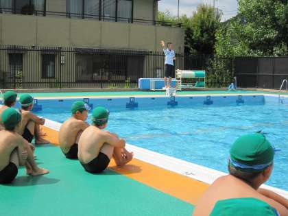 プールでは,諸注意を聞き,練習を始めました。