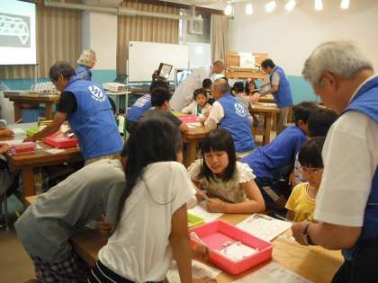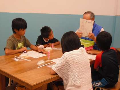 「塔」の作り方は,それぞれのグループにおられる方々に教えてもらいました。皆さんやさしくわかりやすく教えてくださいました。