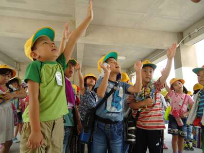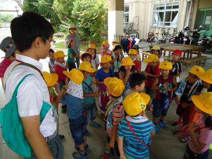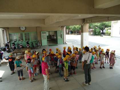 1年生は朝から校区探検です。約束事を確認して,さぁ出発!