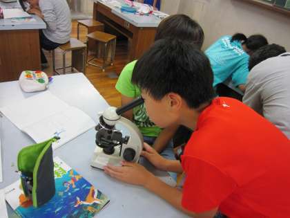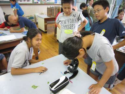 薄い皮にすると葉の細胞が見えます。顕微鏡で見た子は,歓声を上げていました。