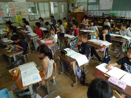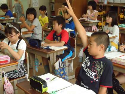 4年1組です。式と計算の学習で,計算の手順について考えていました。掲示物の確かめをしつつ思い出していたようです。