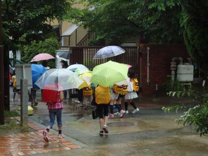 5時間目の終わり頃から,ものすごい雨が降り出しました。雷鳴も轟いていたので1〜3年の子どもたちには学校待機を伝えました。見守り隊の方もしばらく帰るのを待ってもらっていました。また,多くの保護者の方が傘を持ってお迎えに来ていただきました。3時過ぎになってようやく帰ることができました。見守り隊の皆様,保護者の皆様…ありがとうございました。