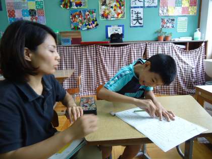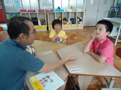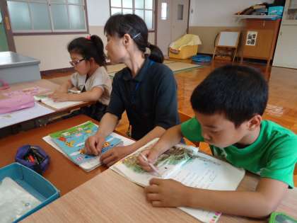 あおぞら学級の3時間目は国語の時間です。ひらがなの言葉あそび,力試し問題,「スイミー」の音読…,それぞれに課題に向かってトライしていました。