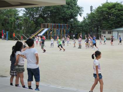 今日の中間休みも子ども達は元気いっぱい運動場で過ごしていました。