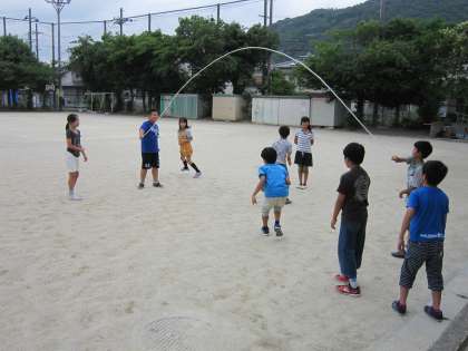 ひっかかっても楽しそうにみんなで大縄跳びを楽しんでいました。