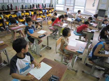 2年1組では,スイミーの漢字10問テストをしていました。