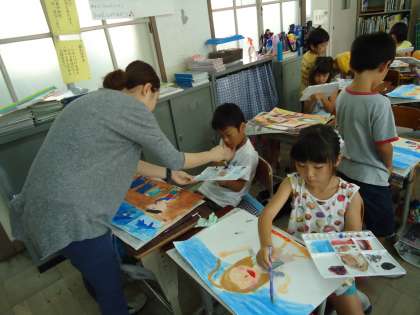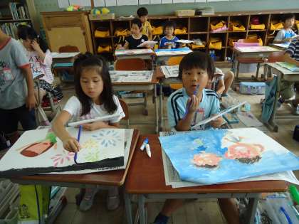子どもたちのオリジナリティのある色づかいが,なかなかいい感じですよ。