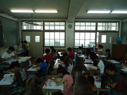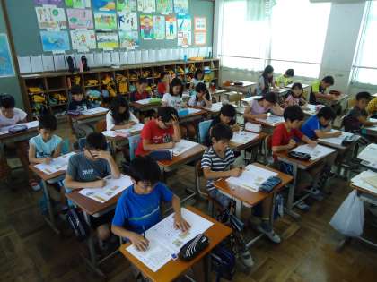 5年2組は国語「生き物は円柱形」のテストです。こちらも集中力抜群で取り組んでいました。