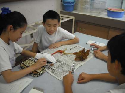 7月1日(火)ホウセンカを赤い水につけて水の通り道を調べる実験をしました。