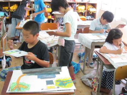 どんな色を塗ろうかと,考え考えしながら,色を付けていく子ども達です。