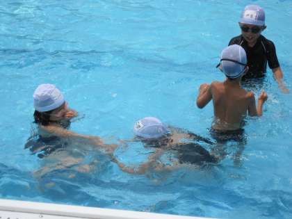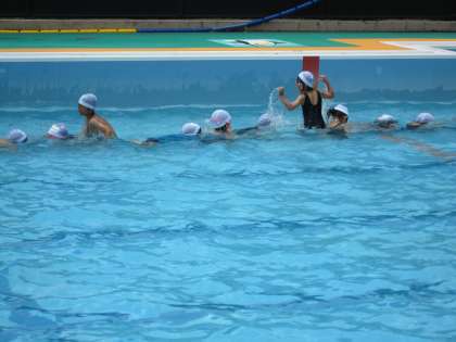 見ていると,水中じゃんけんをしていました。潜ることが平気な子が多いように見えました。潜れる,顔を水につけられることは,泳ぐためにはとても大切なことです。苦手な人がいたら,顔をつける練習をしておいてほしいと思います。