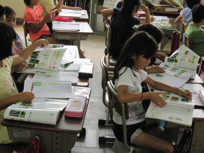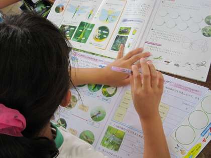 3年1組では,トンボやバッタの体のつくりなどを整理していました。