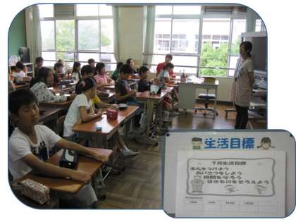 6年2組では,朝の時間に7月の生活目標をもとに自分たちの生活をふりかえっていました。
