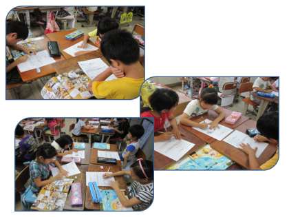 「くしはどこにおいているのですか。」「一日にお客さんは何人くらい来るのですか。」「何年前に保育園はできたのですか。」などを教えてもらおうとしています。