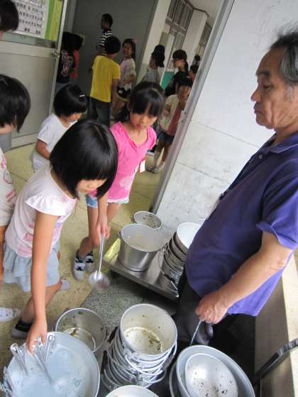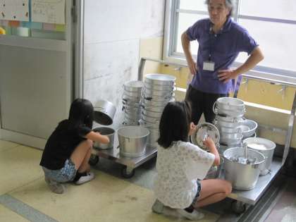 おかずの入れ物の隅に残っている残菜をきれいにとってから返す子もいます。