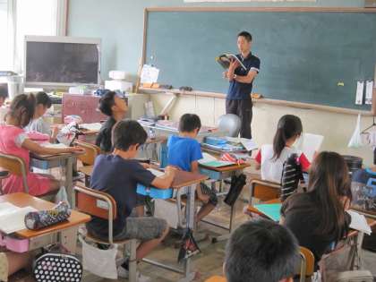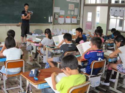 5年1組では,国語で「百年後のふるさとを守る」の音読をしていました。