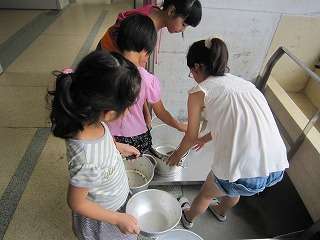 給食委員の子ども達が,返しに来た子ども達を手伝ってくれていました。