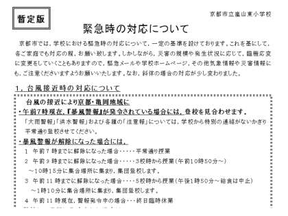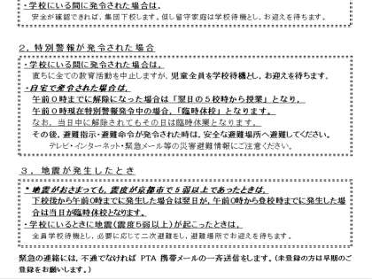 もしも,暴風警報などの警報が出たときには,下記に書かれていますように対応いたします。