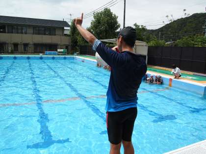 1年生の水泳学習。担任の先生が何か言うたびに「わーっ」「いぇーい」などと反応がすごくて楽しそうです。