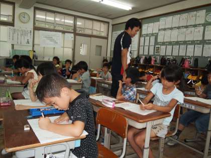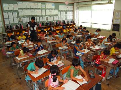2年1組は算数です。「10が24こあつまった数はいくらでしょう」を考えます。大きな数のイメージを持つことから始めます。
