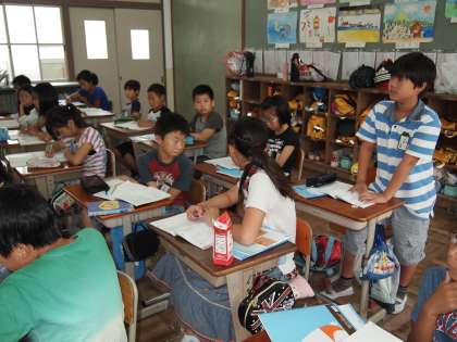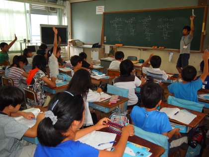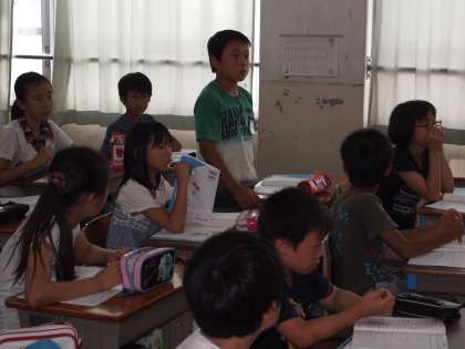 ひっ算の計算で小数点の打ち方を勉強していた5年2組。「なぜそこに打ったのか」の根拠を説明していました。なかなか難しいです…。