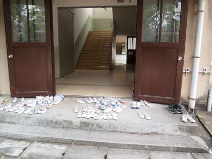 今月の4つの生活目標のうちの一つ「はきものを そろえよう」ですが,この日の1年生もまずまずできているようです。