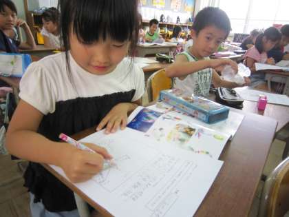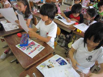 3年1組では,図工で「やさしいモンスター」に取り組みます。今日は,どんな作品しようかと考えていました。これから説明を聞いて作品作りに取り掛かります。