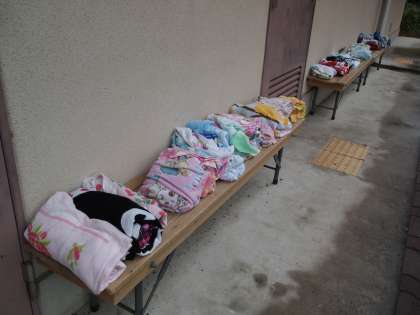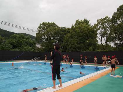 感心したのがバスタオルの置き方です。今日は雨模様ということもあって,バスタオルを更衣室の軒下の長椅子の上に置いたようです。先生の指示があったのでしょうが,それにしてもきちんとていねいにそろえて置かれていますね。こういうことの繰り返しが自律的な力を伸ばしていくのだと思いました。