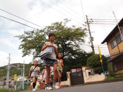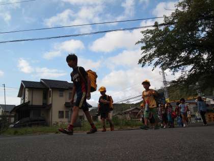 青空が見えています。子どもらは今日も元気に登校して来ました。