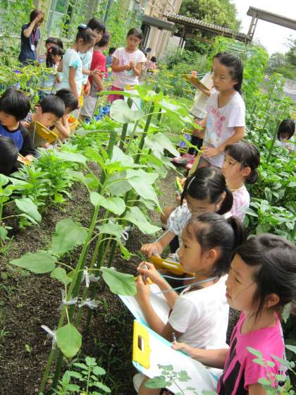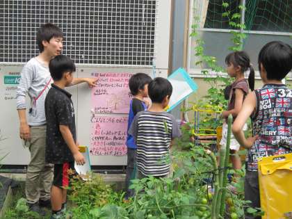 3年生は,学級園でひまわりやホウセンカを育てています。