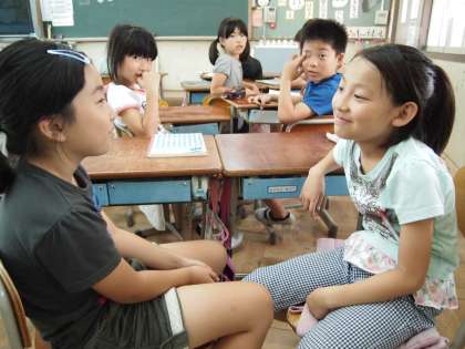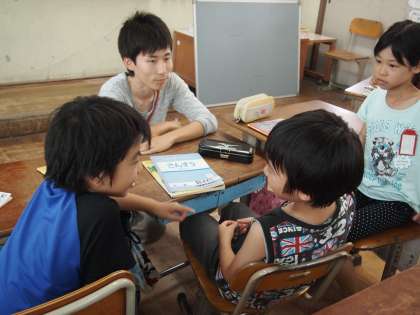 3年2組は算数の時間でした。何やら自分の考えをグループのみんなに聞いてもらっているようでした。