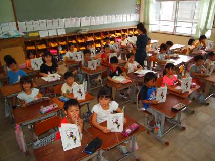 2年2組は国語で『きいろいバケツ』でした。初めてなので先生が読んでくれました。