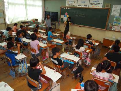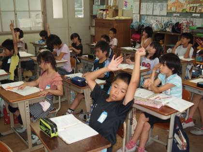 4年1組は昨日に続いて,算数の時間で小数の学習でした。