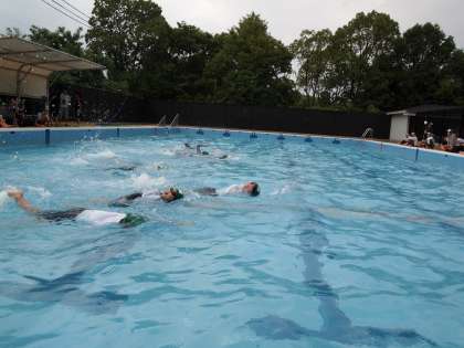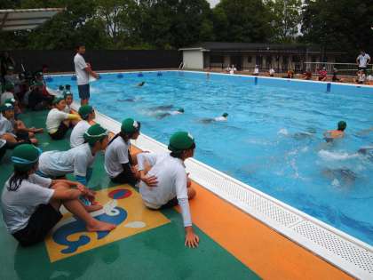 服を着たまま泳ぐのはとても苦労します。口で説明してもわかりにくいのですが,実際にやってみると本当に大変…。