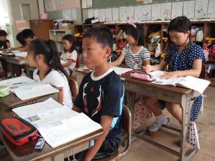 3年1組は算数です。数直線を使った学習ですが,問われている数字が数直線上のどの目盛に当たるのか…考えていました。