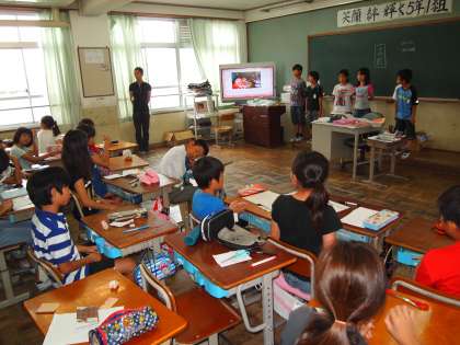 5年1組です。木曜日に山の家での体験談を4年生に伝えます。今日はその練習をしていました。山の家で大きく成長した5年生ですが,その時に感じたことや考えた貴重な心の中身を4年生に伝えてくれます。4年生は9月にみさきの家を控えているので,その参考になるような価値ある時間にしてほしいと願っています。