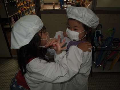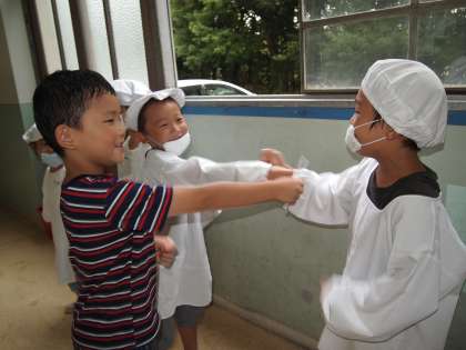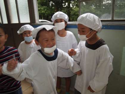 給食室へ行くよ