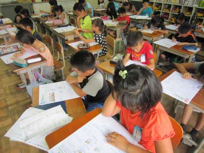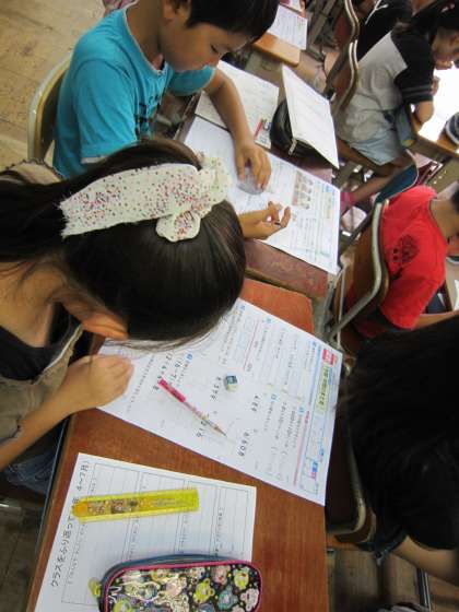 4年2組では,これまでに学習したことの定着度を確かめようと,問題に取り組んでいました。