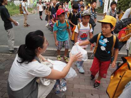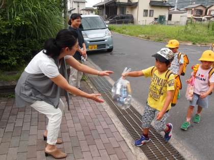 アルミ缶の回収はいつもPTA本部さんが輪番でお世話をして下さいます。今日も暑い中,ありがとうございました。
