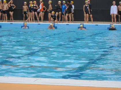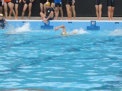 今日の6年生は,水泳学習で25m泳げるかを確認していました。