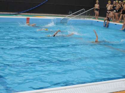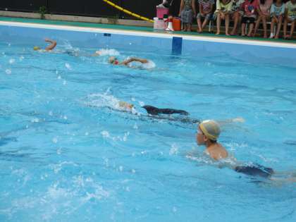 子ども達は,クロールで25mを泳ぎきろうと頑張っていました。