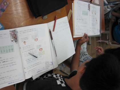 早くできた子らは,となりの子と問題を出し合っていました。