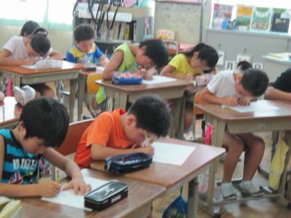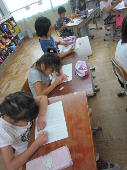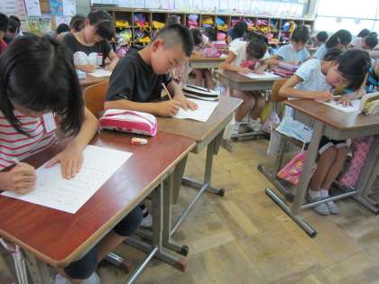 3年2組では,漢字の小テストをしていました。事前に練習もしていたので,自信をもってテストにのぞんでいる子が多いように思えました。