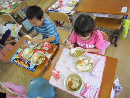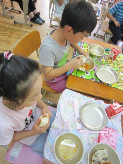 今日の給食には,「ラタトゥユ」がでました。給食時間の終わりごろに,1年1組を見に行くと,食べ終わっている子が半分くらいいました。食べている子もほとんど食べ終わりかけていました。