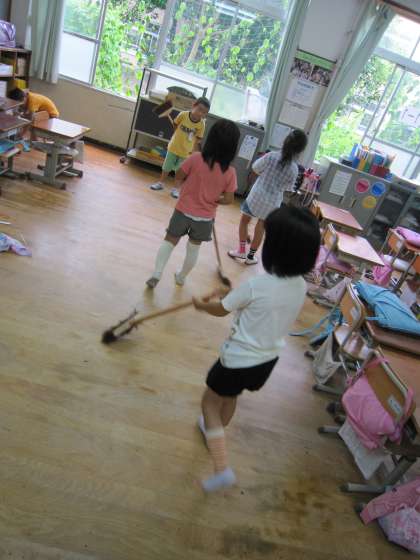 今日もそうじの時間に,3つの玉を磨こうと頑張っている子ども達がいました。