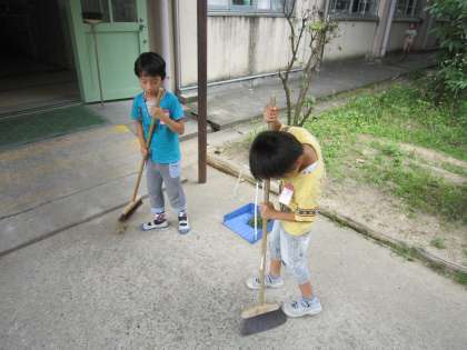 教室の中や外廊下をきれいにしようと頑張っている子どもたち