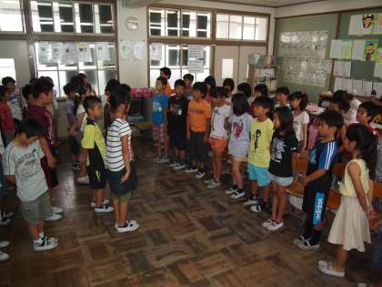 山の家でもらった「木製金メダル」を披露してくれた子もいました。最後は向かい合って「ありがとうございました!」