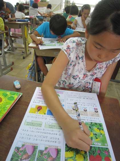 3年1組では,理科のテストをしていました。